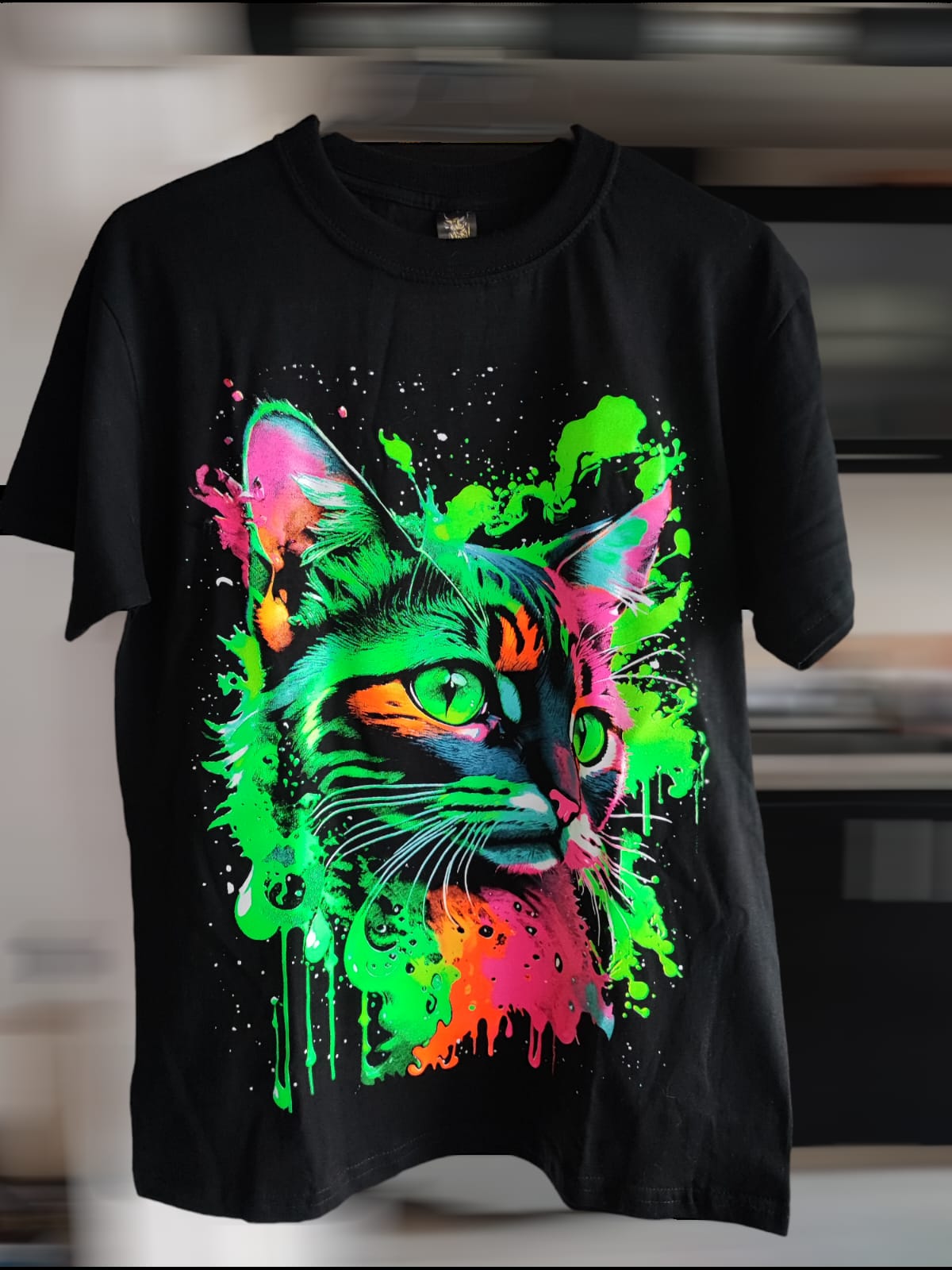 Destaca en la multitud con nuestra llamativa camiseta fluorescente de gato. Esta camiseta, perfecta para los amantes de los gatos y el estilo único, presenta un diseño brillante que resplandece en la oscuridad, ideal para fiestas, conciertos o cualquier evento nocturno. Confeccionada con algodón suave y de alta calidad, ofrece comodidad y transpirabilidad durante todo el día. Su ajuste relajado y su cuello redondo la hacen perfecta para cualquier ocasión informal. Disponible en varias tallas, es una prenda imprescindible para aquellos que quieren destacar con estilo y originalidad.